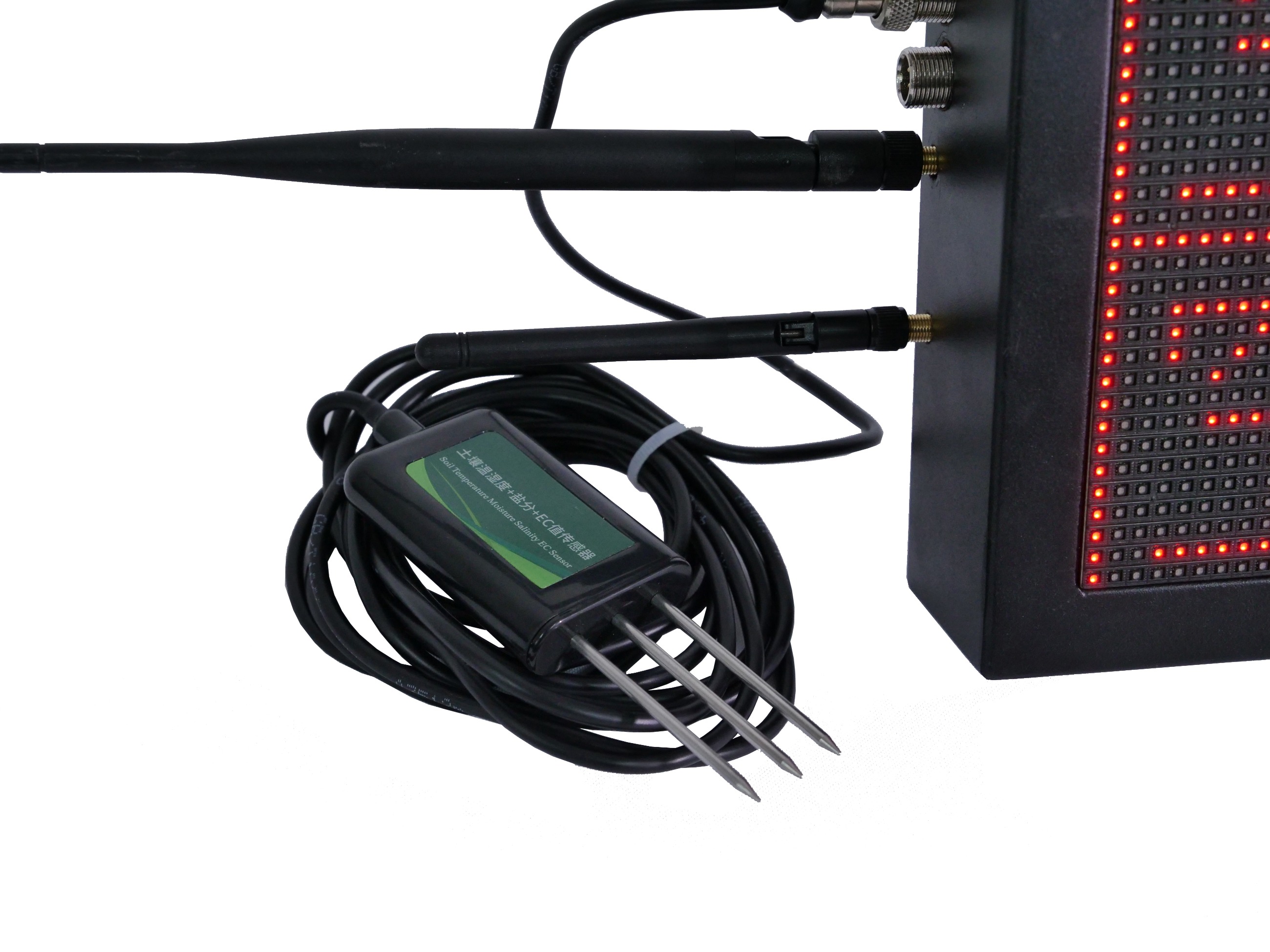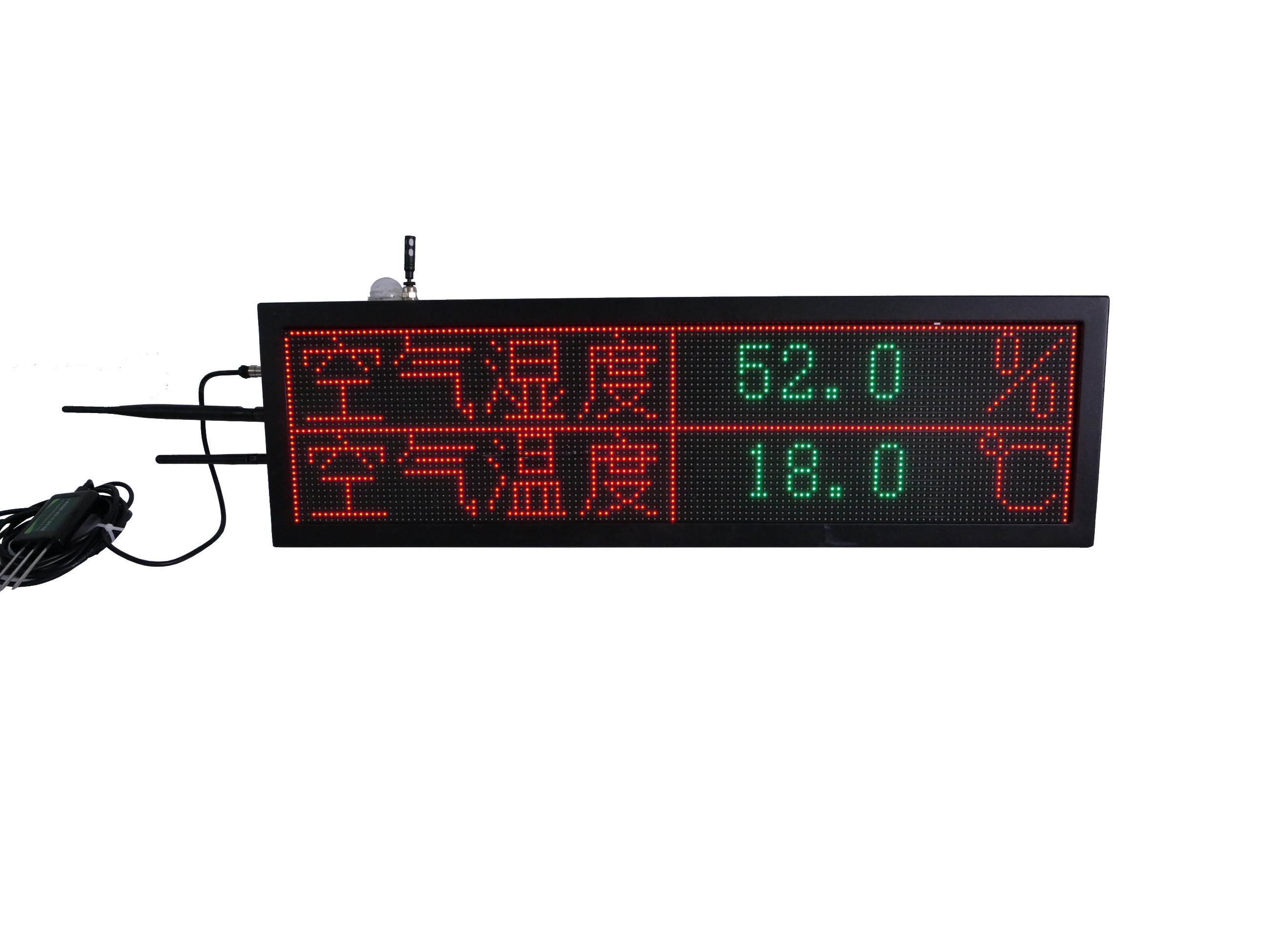 LED環境六要素采集器外觀為P4.75LED雙色顯示屏設計,顯示屏可外接多個傳感器,可實時采集溫室大棚內的空氣溫度、空氣濕度、光照、二氧化碳濃度、土壤溫度、土壤濕度等環境數據,并同步上傳至棚保姆物聯網平臺,可通過LED環境六要素采集器自帶的LED雙色顯示屏及棚保姆物聯網平臺手機APP實時查看監測數據。